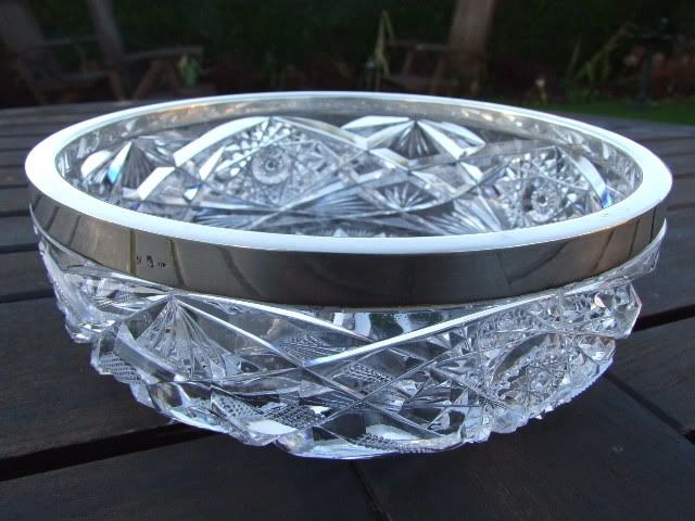 Any help on the silver marks on the silver rimed bowl please, Ihope this may be the right forum for this item, I live in the UK but collect ABP glass , although when items are unmarked its not always possible to be sure if the item was made in the USA or the possibility of it being European, I believe this may well be American and the the silver rim may also be the USA, so any help on the ID of the silver marks may help me conclude as to the origin of the bowl, the bowl measures 8.5" in diameter and weighs 2kgs