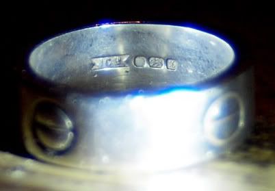 The first hallmark isn't too clear, especially not on the photo but it looks like a faint smiley face! The next one is the sterling mark, and I'm assuming the last mark is the date mark, it's a fancy 'X' with a small line through the middle.