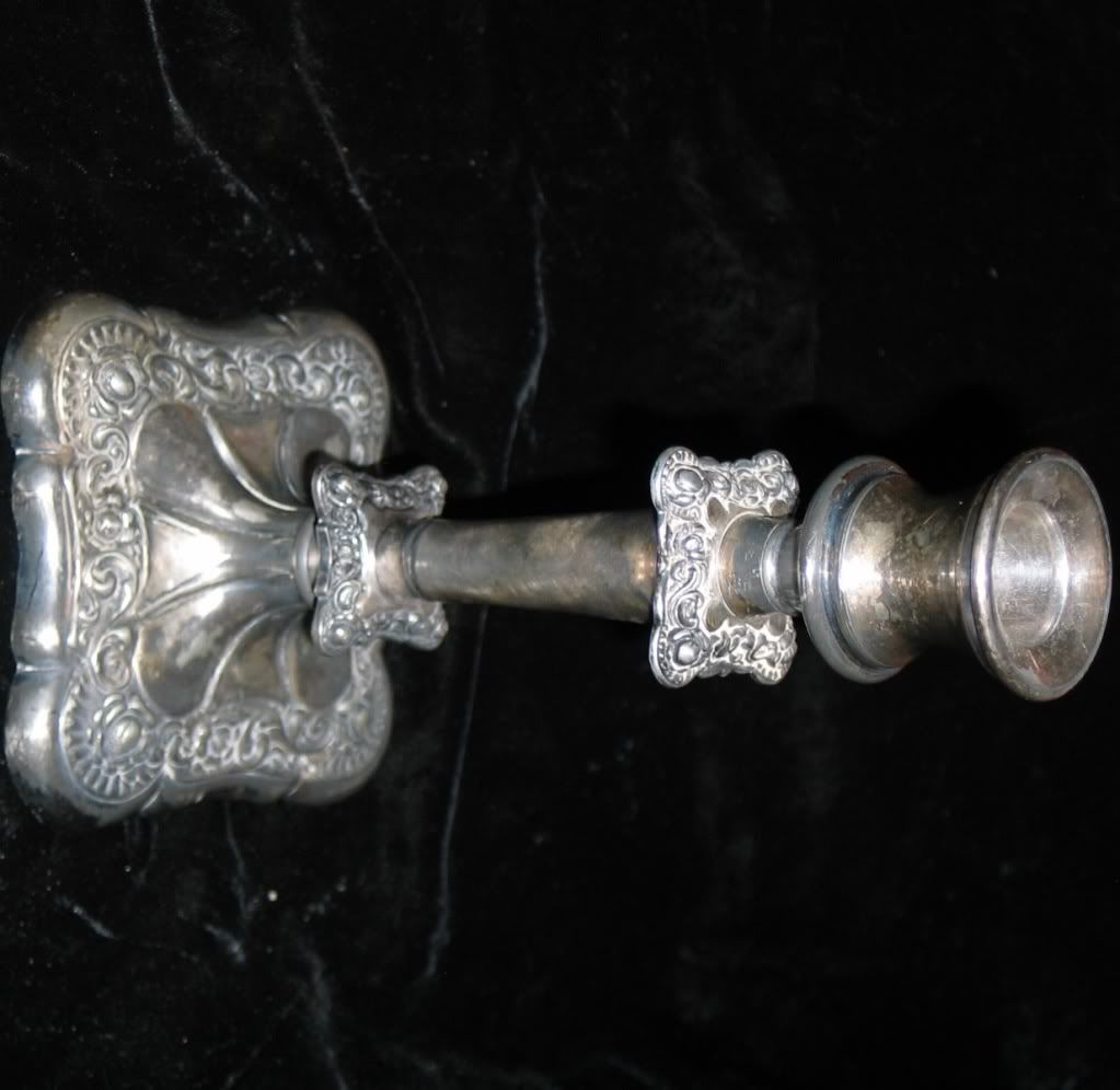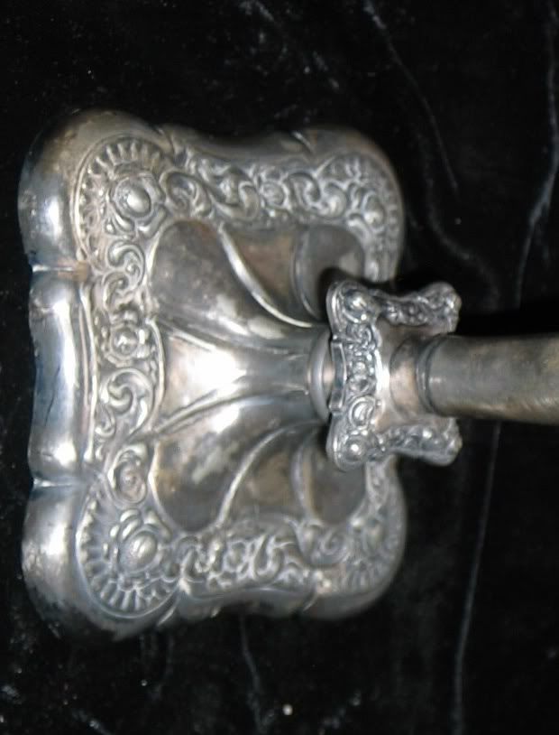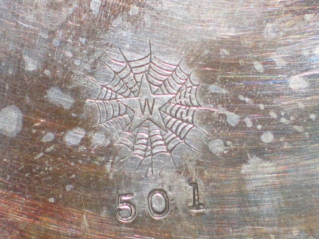 Hi All, Recently purchased this nice candle stick. It measures 8 1/2' tall and has a spider web mark with a "W" in the middle. I'm pretty sure this is plate but need help with the makers name and dating. Thank you for your help. Bill